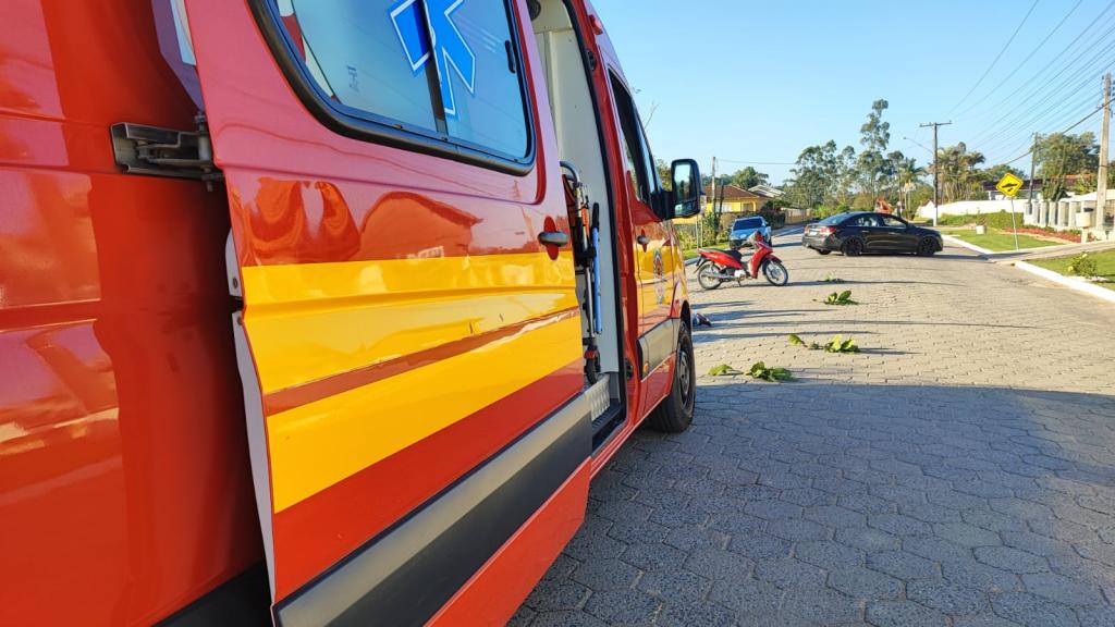 Uma mulher sofreu várias escoriações ao sofrer um acidente de trânsito na tarde desta quinta-feira, 6 de julho, em Canelinha. A motociclista, moradora de São João Batista, se desequilibrou e caiu ao passar por uma lombada na Rua Padre Januário, no Bairro Índia.