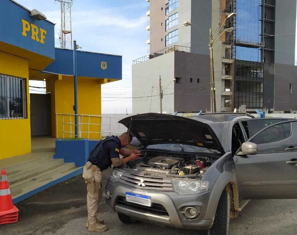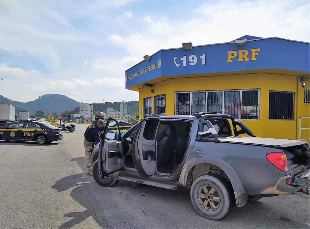 Uma caminhonete Mitsubishi/L200 roubada no Paraná, foi recuperada na manhã desta sexta-feira, 5 de maio, na BR-101, em Itapema, durante uma fiscalização de rotina da PRF (Polícia Rodoviária Federal). A picape, com registro de roubo em Curitiba/PR, portava placas falsas, de outra L200, de mesmas características.