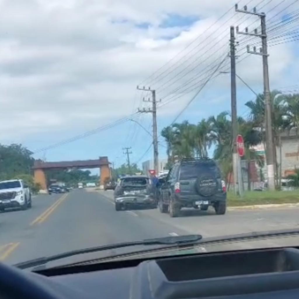 Um motorista foi flagrado realizando manobras em zigue-zague com uma GM Tracker na SC-410, no bairro da Índia, em Canelinha, na tarde de domingo, dia 09 de novembro. Poucos minutos depois, o condutor perdeu o controle do veículo ao chegar ao centro da cidade, também na SC-410, e acabou de colidindo com dois automóveis.