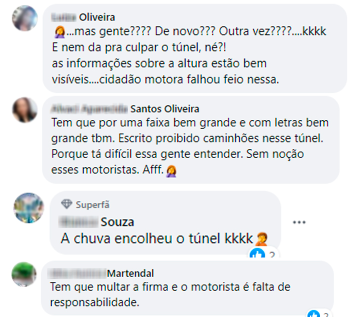 Uma longa fila se formou no local, já que a via acabou bloqueada. O problema é tão antigo que passou a ser piada entre os moradores. Internautas chegam a brincar afirmando que “o túnel encolheu”, enquanto outros pedem punição aos motoristas.
