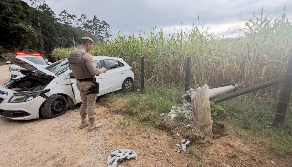 A Polícia Militar realizou o registro do boletim de ocorrência. A Celesc também foi acionada para os procedimentos necessários, em razão da queda do poste e dos danos causados à rede elétrica.