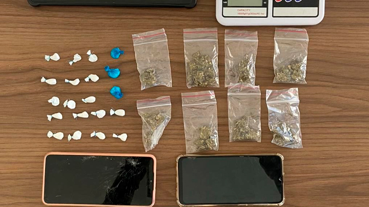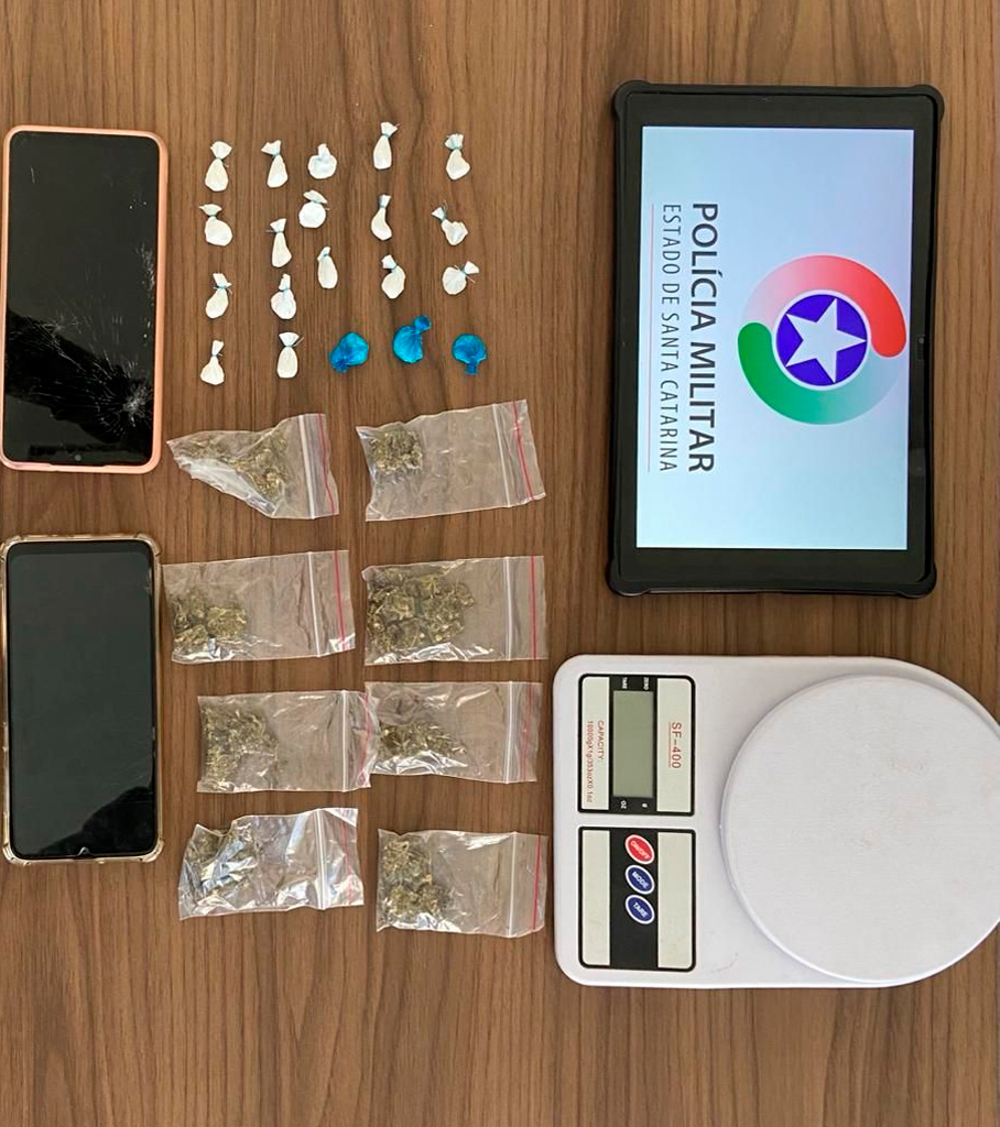A detida estava próxima do veículo tentou entrar na residência, mas foi abordada. Em revista pessoal, foram encontradas duas buchas de cocaína em seu sutiã. No muro do imóvel, mais 18 unidades da droga e outras oito porções de maconha foram localizadas em buraco feito no muro.