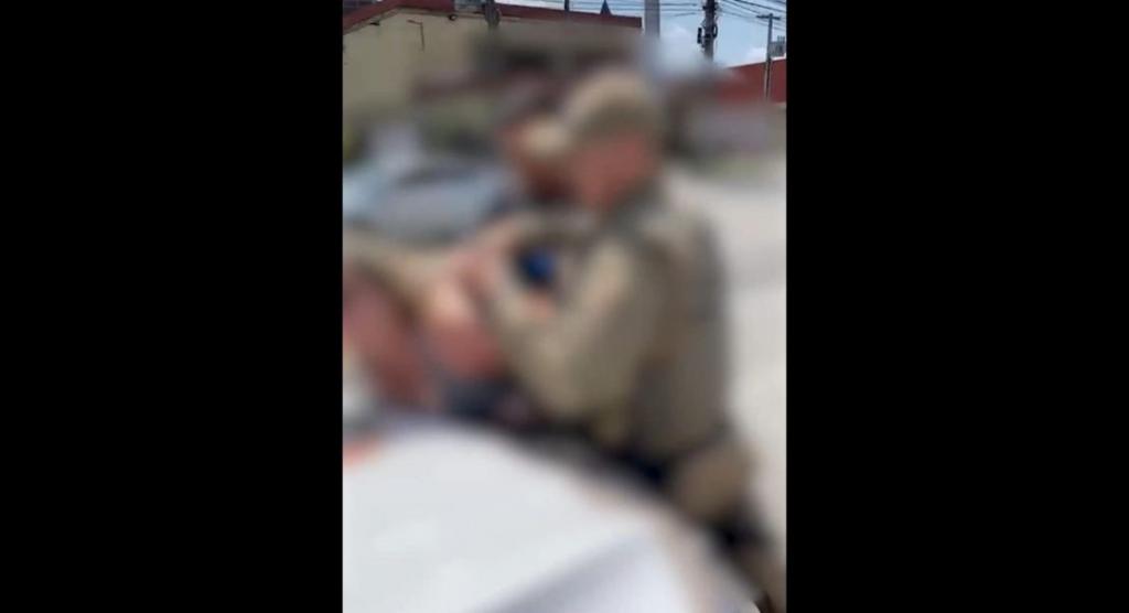 A Polícia Militar estava conduzindo um procedimento de trânsito com o condutor de um veículo quando a mulher, que passava pelo local, iniciou uma série de xingamentos e atitudes agressivas. A situação rapidamente saiu de controle quando a mulher cuspiu no rosto de um dos agentes e utilizou uma ponta de escapamento para bater na viatura policial.