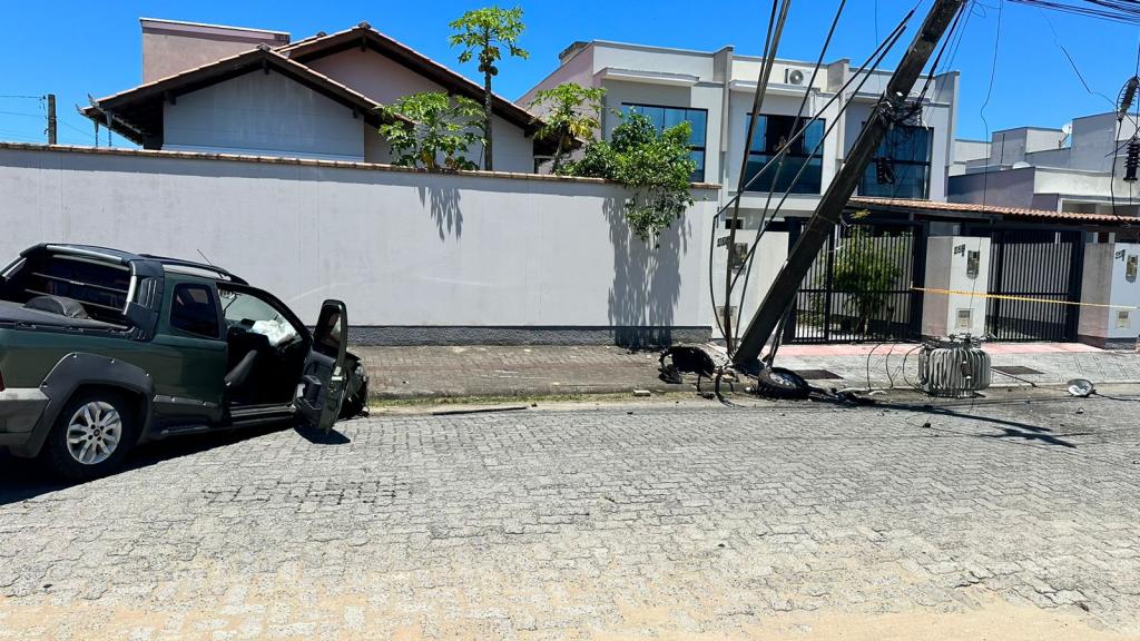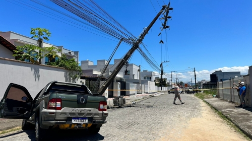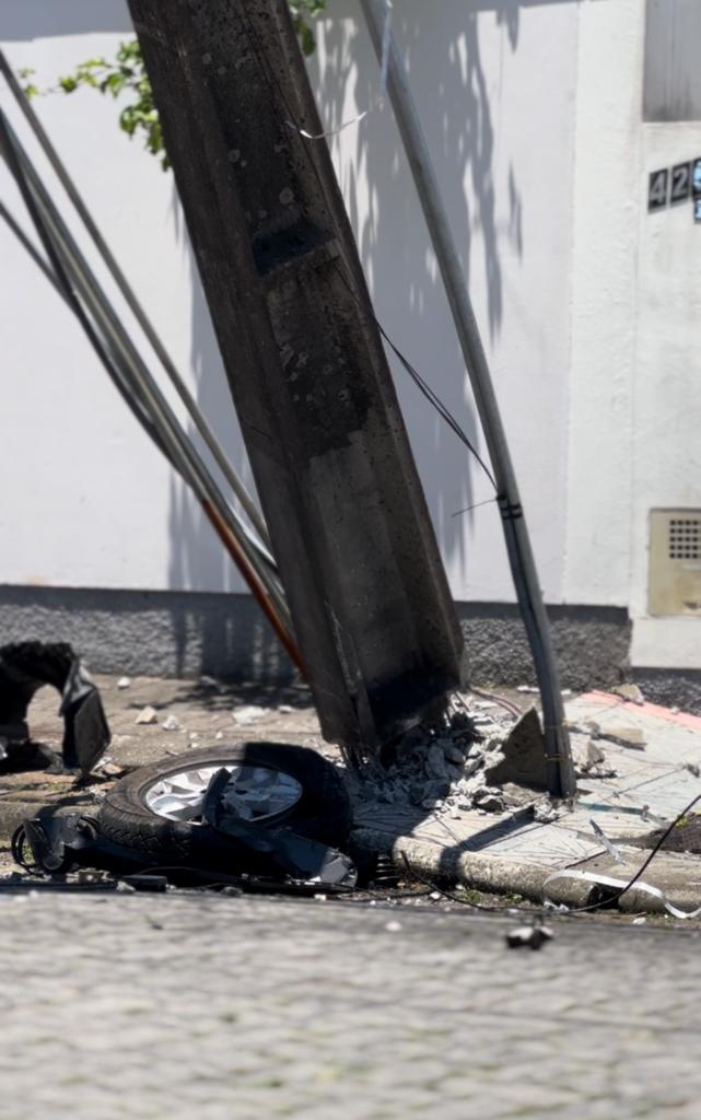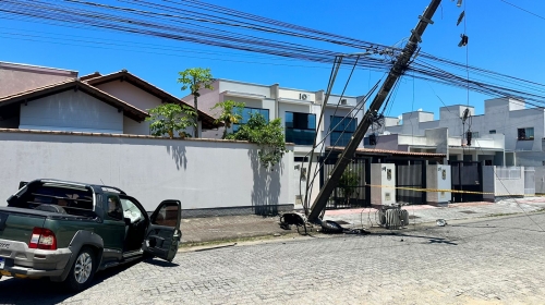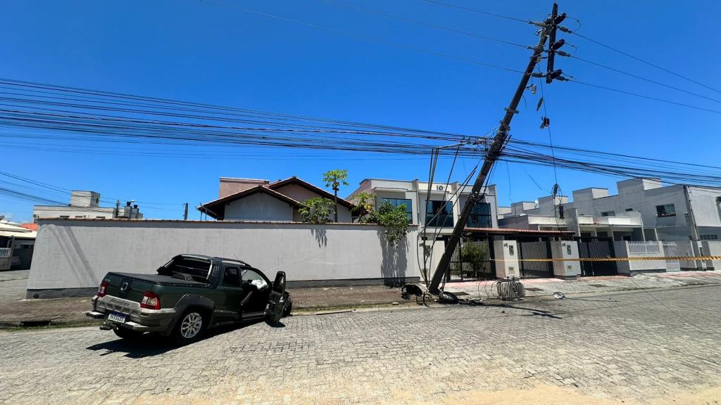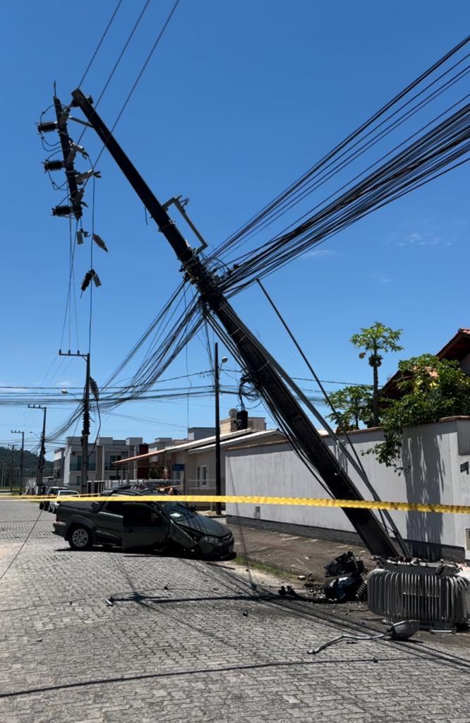 Uma colisão considerada violenta praticamente derrubou um poste no início da tarde deste domingo, 24 de dezembro, véspera de Natal, em Tijucas.