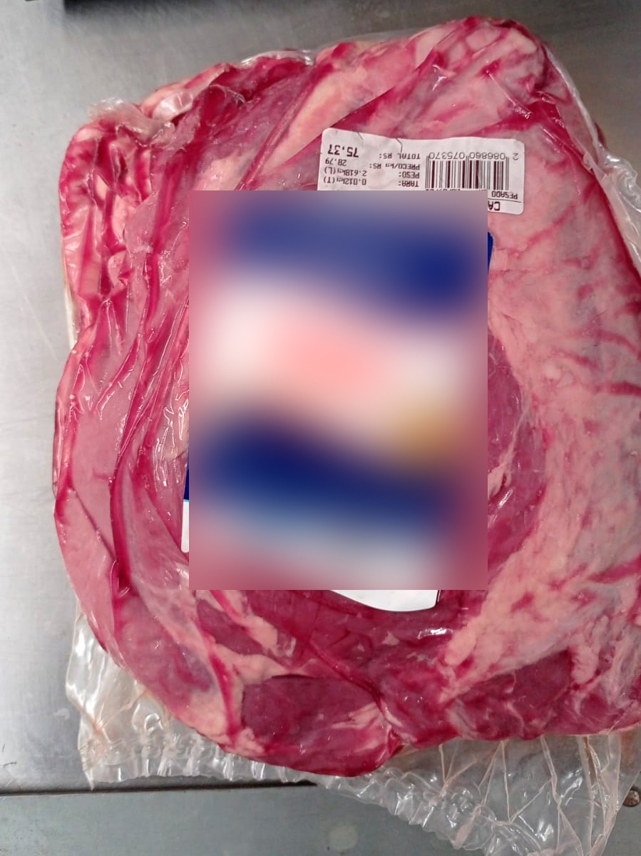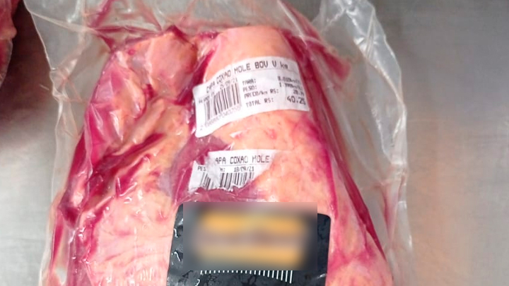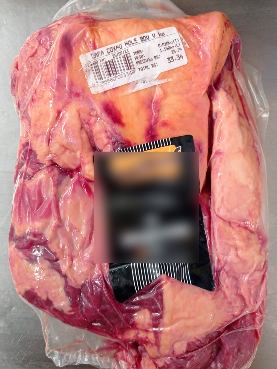 Na bolsa foram encontradas quatro peças de carne, entre elas capa de colchão mole e contra filé. Havia também um frasco de shampoo. A mulher relatou que seu namorado a fez tomar três comprimidos de Diazepam e uma caipirinha, em seguida a convidou para ir ao mercado.
