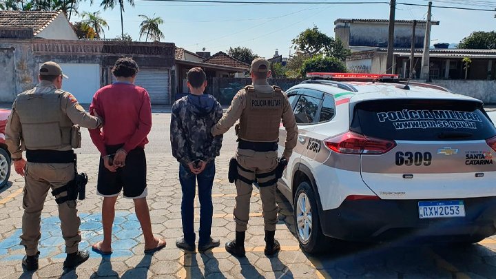 Dois homens foram identificados como suspeitos. A mulher confirmou que seu marido participou do furto e teria deixado os objetos na casa. Ela foi presa por receptação. Um vaso com um pé de maconha também foi apreendido.