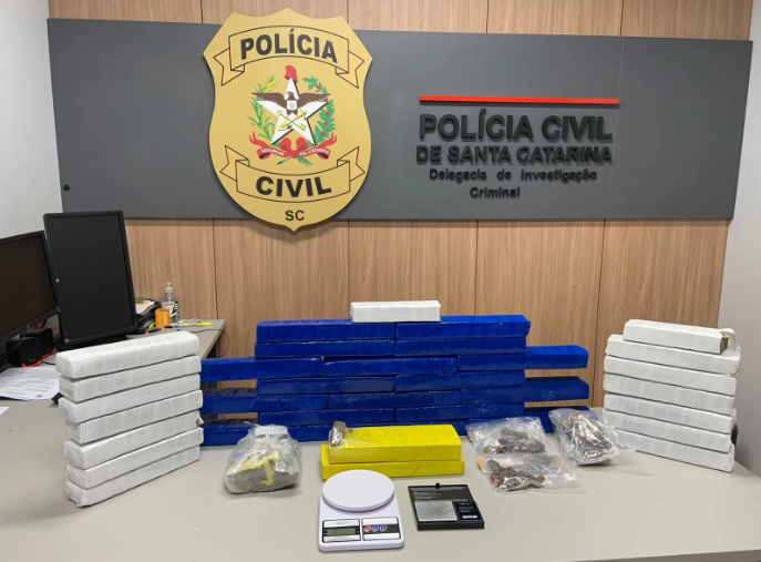 Durante as diligências, os policiais cumpriram mandados de busca e apreensão em endereços nos bairros Nova Brasília, Ponta Russa e Águas Claras, em Brusque, e no bairro Cordeiros, em Itajaí. No total, foram apreendidos cerca de 27 quilos de drogas, entre maconha e haxixe, além de balanças de precisão, embalagens a vácuo, dinheiro e outros materiais utilizados no preparo e fracionamento dos entorpecentes.