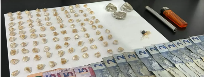 Na sequência, outra ação foi desencadeada no local conhecido como “brejo”, já mapeado pela PM como ponto de comércio ilegal de drogas. Três homens foram flagrados em movimentação suspeita. Um deles escondia porções de maconha sob uma pedra, enquanto outro chegou em uma motocicleta com 100 pedras de crack e R$ 97 em dinheiro trocado.