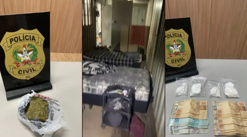 Os policiais monitoravam um veículo ocupado por dois homens que havia se deslocado até Itajaí, suspeitamente para adquirir entorpecentes. Após retornarem a Brusque, o carro foi seguido até uma oficina mecânica no bairro São Pedro, onde um terceiro indivíduo aguardava no local. Durante a abordagem, foram encontrados mais de 150 gramas de cocaína e aproximadamente R$ 2.400 em dinheiro, levando à prisão dos três suspeitos.