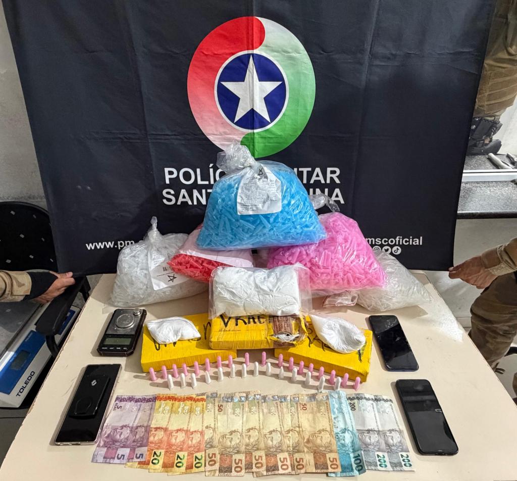 Segundo a PM, um homem de 46 anos e sua companheira, 37, atuavam de forma organizada no comércio de cocaína nos municípios de Bombinhas, Itapema e Porto Belo. De acordo com as investigações, a mulher ficava responsável pelo preparo, fracionamento e armazenamento da droga na residência do casal, enquanto o homem fazia a distribuição usando um carro.