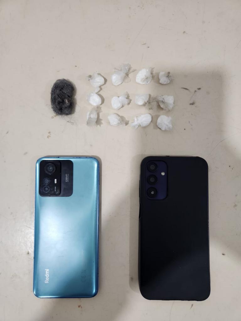 Com a dupla, foram encontradas 12 porções de substância semelhante à cocaína e três pedras de crack. Inicialmente, o homem alegou uso pessoal, mas o adolescente afirmou que ambos realizavam entregas de drogas, com negociações feitas por celular.