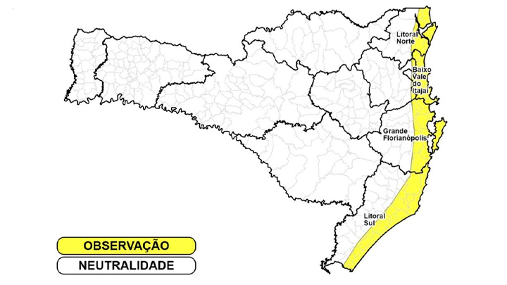 De acordo com a Defesa Civil, a passagem do fenômeno pelo oceano contribui para um dia com muitas nuvens e possibilidade de trovoadas. Na Grande Florianópolis, onde está o Vale do Rio Tijucas, a expectativa é que o acumulado de chuva ultrapasse a marca de 50mm.