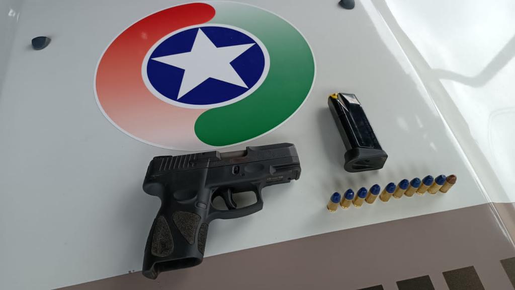Também foi encontrada uma pistola da marca Taurus, modelo G2c, com numeração suprimida, acompanhada de oito munições no carregador, totalizando dez munições intactas.