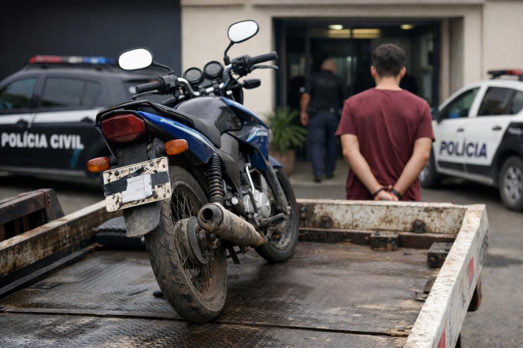 Diante dos fatos, o homem foi conduzido à Delegacia de Polícia Civil de Itapema para os procedimentos legais cabíveis. A motocicleta foi apreendida e removida ao pátio conveniado.