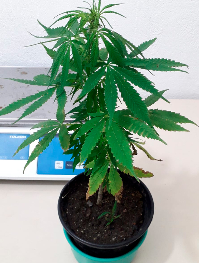 Em seguida o suspeito chegou e confirmou que a planta era de sua propriedade. Ele relatou que a encontrou e a levou para casa para cultivá-la pois é usuário do entorpecente. O homem foi preso em flagrante e levado para a Delegacia de Polícia Civil, juntamente da planta apreendida.