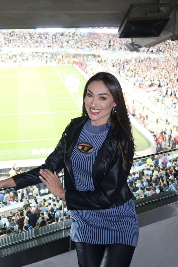 A empresária Franciele Puchivaile assistindo ao jogo passado de Argentina vs. Brasil em Buenos Aires.