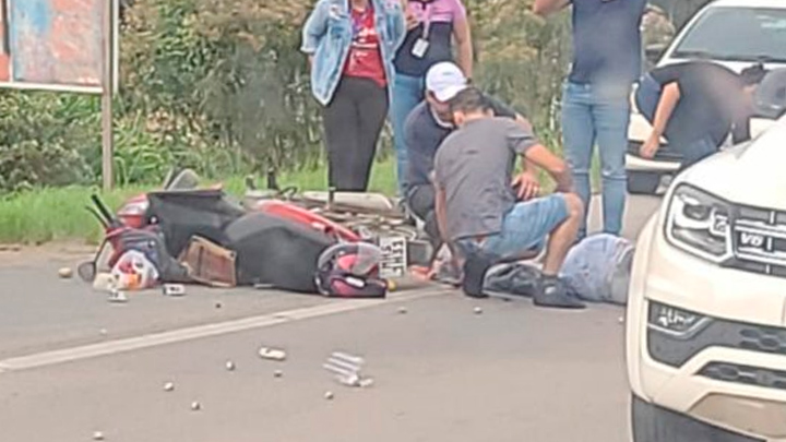 De acordo com um dos envolvidos, ele conduzia a Honda/Biz, junto à esposa. O casal seguia sentido a entrada do bairro Itinga, onde residem. Em determinado momento, o pneu da moto furou, fazendo com que ambos caíssem no asfalto.