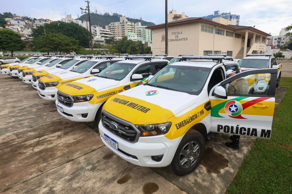 O primeiro ato foi a entrega por parte do Governo do Estado de 23 novas viaturas para o patrulhamento e a manutenção da ordem pública das rodovias estaduais. O valor do investimento estadual para a compra das viaturas foi de R$ 5,6 milhões, com recursos do convênio firmado entre a PMSC e a Secretaria de Infraestrutura e Mobilidade do Estado. O governador Jorginho Mello fez a entrega simbólica ao comandante-geral da PMSC, coronel Aurélio José Pelozato da Rosa de uma chave de uma das viaturas.