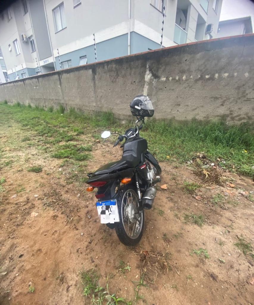Ao chegar ao local, os policiais encontraram uma motocicleta Honda CG, com a chave na ignição e um capacete apoiado no retrovisor direito, abandonada no terreno. Imediatamente, a guarnição conduziu uma consulta junto ao COPOM nos sistemas de segurança, revelando um registro de furto em relação à motocicleta.