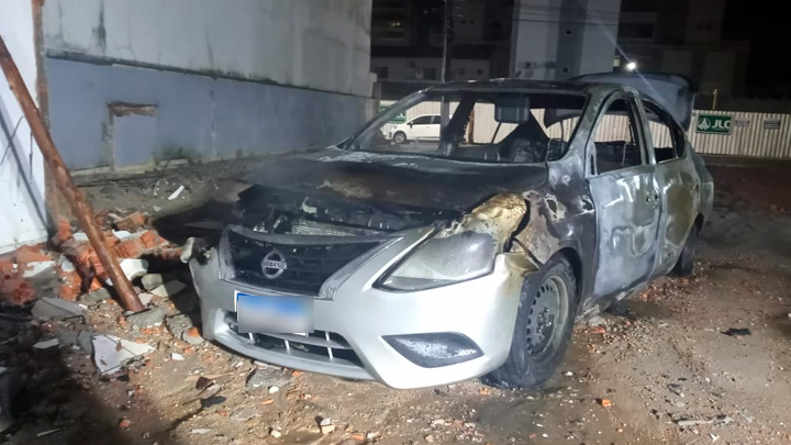 No local, o corpo de bombeiros já controlava o fogo, e foi possível constatar que se tratava de um Nissan/Versa que ficou completamente destruído.
