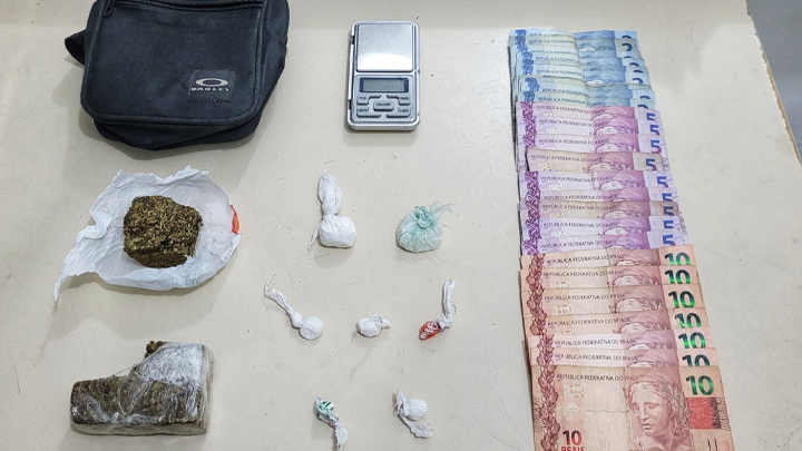 A Polícia Militar confirmou a prisão de outro envolvido, identificado pelas iniciais “L.R.S. da S.”, de 20 anos. Ele estava com uma bolsa e dentro dela foram localizados um torrão de maconha, cinco porções de cocaína, uma balança de precisão e R$ 131,00 em dinheiro.