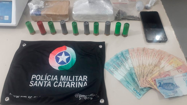 Buscas foram feitas na residência. Uma mochila com 10 munições calibre 12 e R$532 em dinheiro foram localizados. Havia ainda, embaixo do colchão, uma pequena quantidade de rachiche e mais maconha, além de mais R$500. Todo o material apreendido e os envolvidos foram entregues na Delegacia de Polícia Civil.