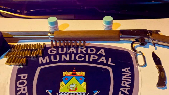 A Guarda Municipal constatou que o motorista havia ingerido bebidas alcoólicas e feito uso de cocaína. Em busca pessoal e veicular, uma carabina .38 foi encontrada, junto de 33 munições e nove cartuchos, além de um canivete e medicamentos controlados.