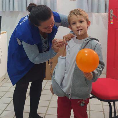 A vacina oferecida é a trivalente, capaz de proteger contra os três principais tipos de vírus “da gripe” em circulação: Influenza A (H1N1), Influenza A (H3N2) e Influenza B.