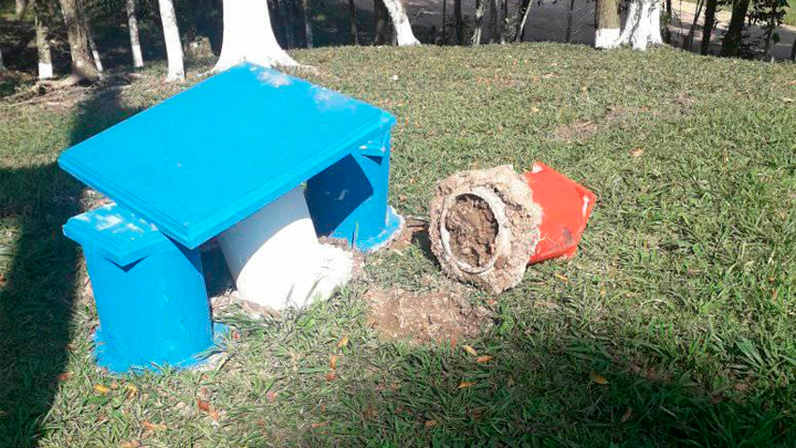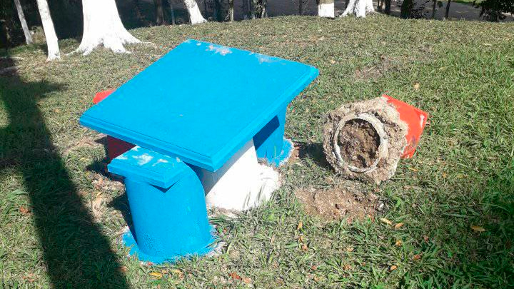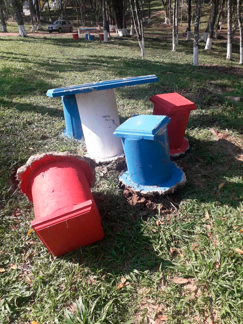 Com as reformas, o espaço ganhou novas mesas, bancos e lixeiras. Porém, menos de um mês após o trabalho, boa parte dos itens instalados foram destruídos. A parte concretada foi retirada e jogadas no chão.