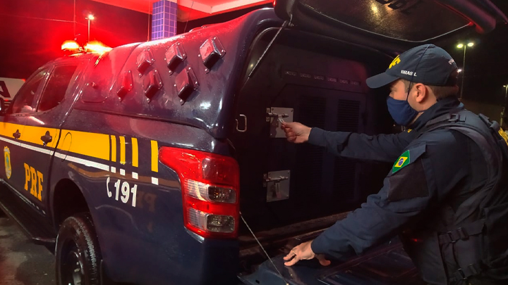 O capturado estava em um Ford/Edge com placas de Itapema. Ao ser abordado seu nome foi consultado no sistema e o mandado de prisão ativo foi descoberto.