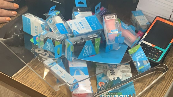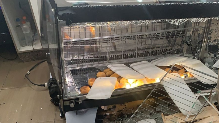 O autor foi abordado nas proximidades do hospital e estava extremamente alterado. O facão utilizado na ameaça ao comércio estava dentro do automóvel. Ao retornarem ao posto, juntamente com o detido, foram constatados os danos.