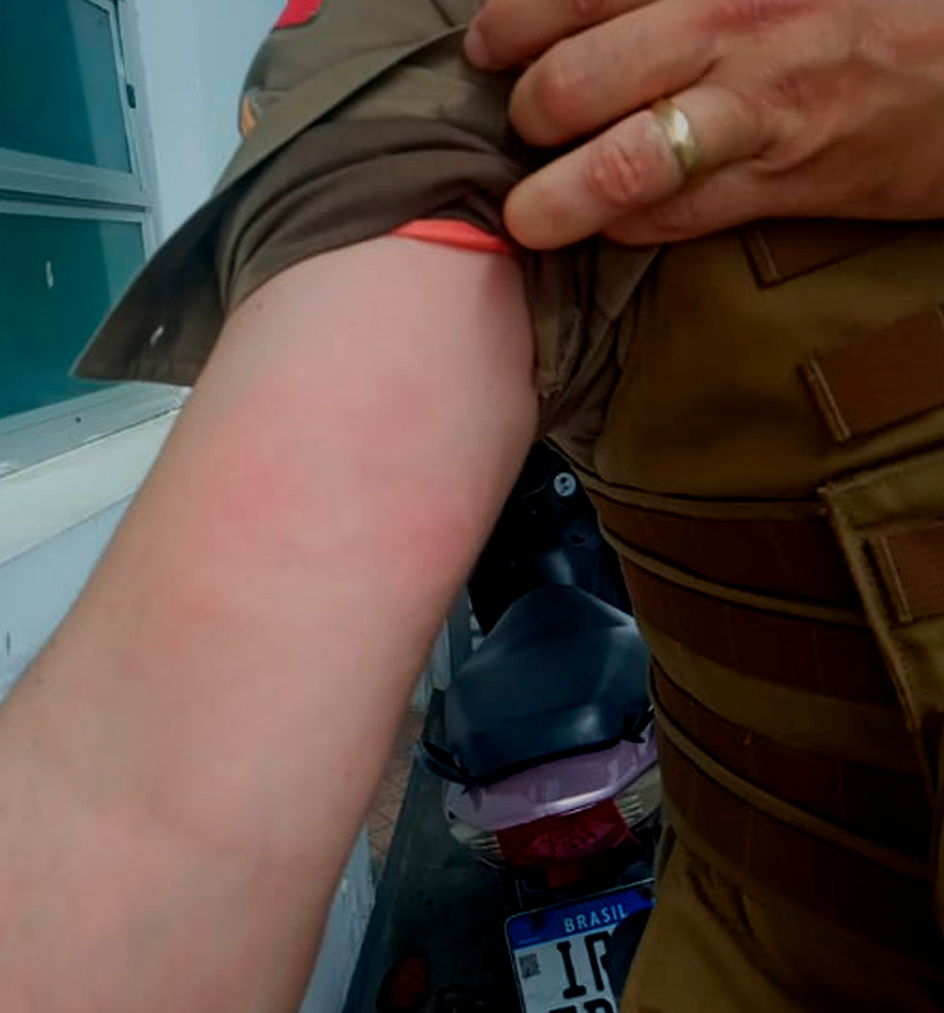 Quando os soldados chegaram no endereço na rua 1202, no bairro Ilhota, em Itapema, a mulher relatou que seu filho tem esquizofrenia. Ele havia agredido a mãe e pegou seu celular à força, em seguida forçou seu irmão de 11 anos a entregar a faca que o menino usava para cortar um bolo.