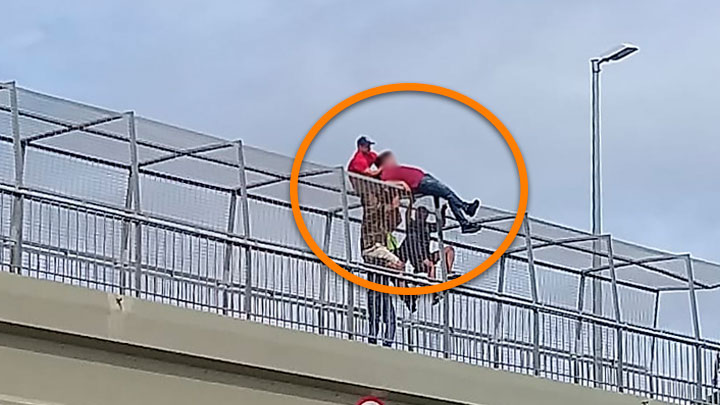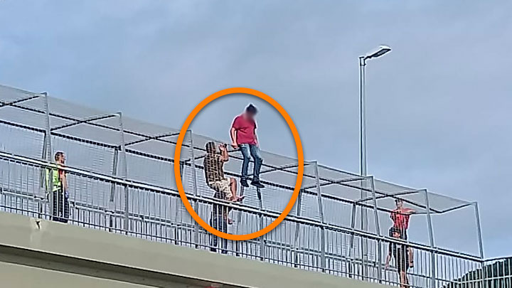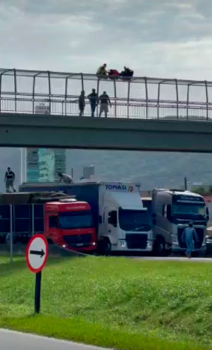 O homem que tentou pular de uma passarela sobre a rodovia BR-101, em Itapema, na manhã desta segunda-feira, 18 de abril, apresentava sinais de estresse e agressividade, aponta o relatório feito pelos socorristas do Corpo de Bombeiros que atuaram no resgate.