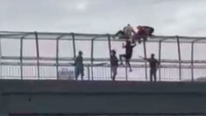 A ação de um socorrista impediu a queda. O militar segurou o homem pelo braço e pelo queixo. Devido à instabilidade da estrutura, o bombeiro quase caiu ao tentar sustentar todo o peso da vítima. Imediatamente, outros dois soldados auxiliaram e conseguiram impedir a queda.