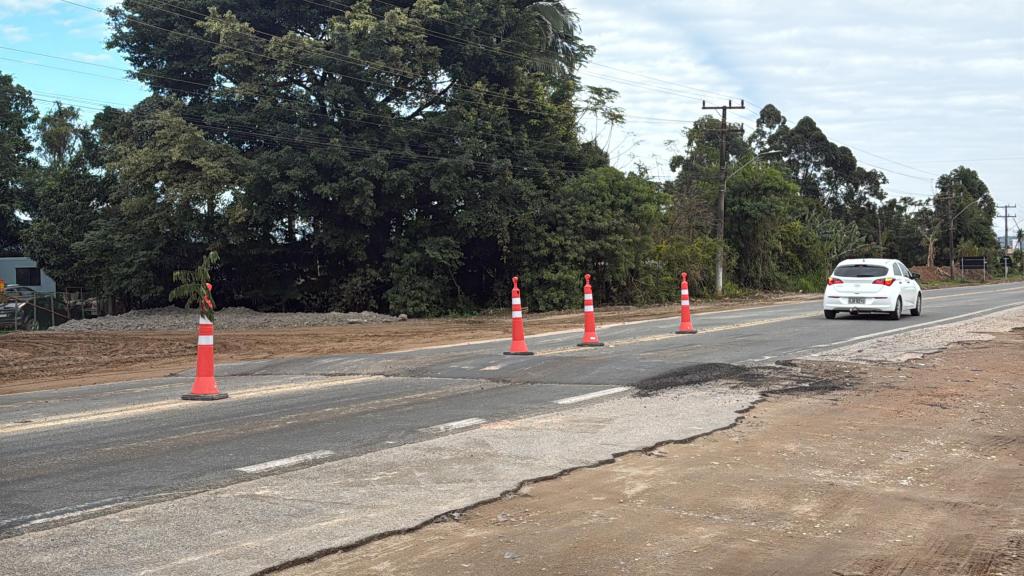 Motoristas que trafegam pela SC-410, no bairro Nova Descoberta, em Tijucas, devem redobrar a atenção . Novas lombadas foram instaladas no trecho, mas ainda estão sem a devida pintura, o que tem surpreendido condutores, especialmente durante a noite e em dias com baixa visibilidade.