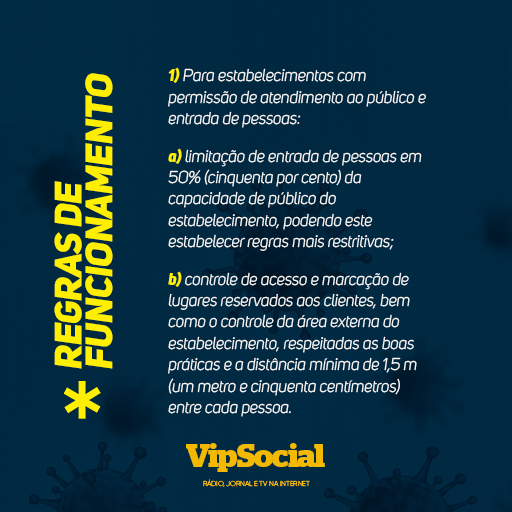 Limitação de entrada de pessoas em 50% (cinquenta por cento) da capacidade de público do estabelecimento, podendo estabelecer regras mais restritivas
