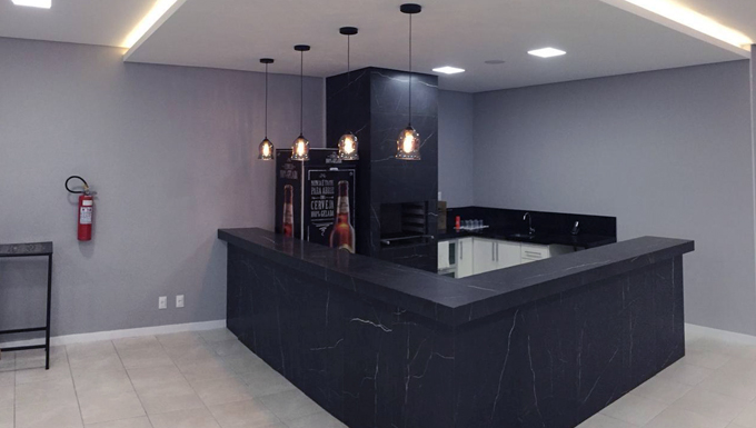 O espaço gourmet ainda tem bar, cervejeira e a cozinha já é equipada com talheres próprios, copos e até pratos para sobremesas, evitando que a despesa seja maior para o contratante.