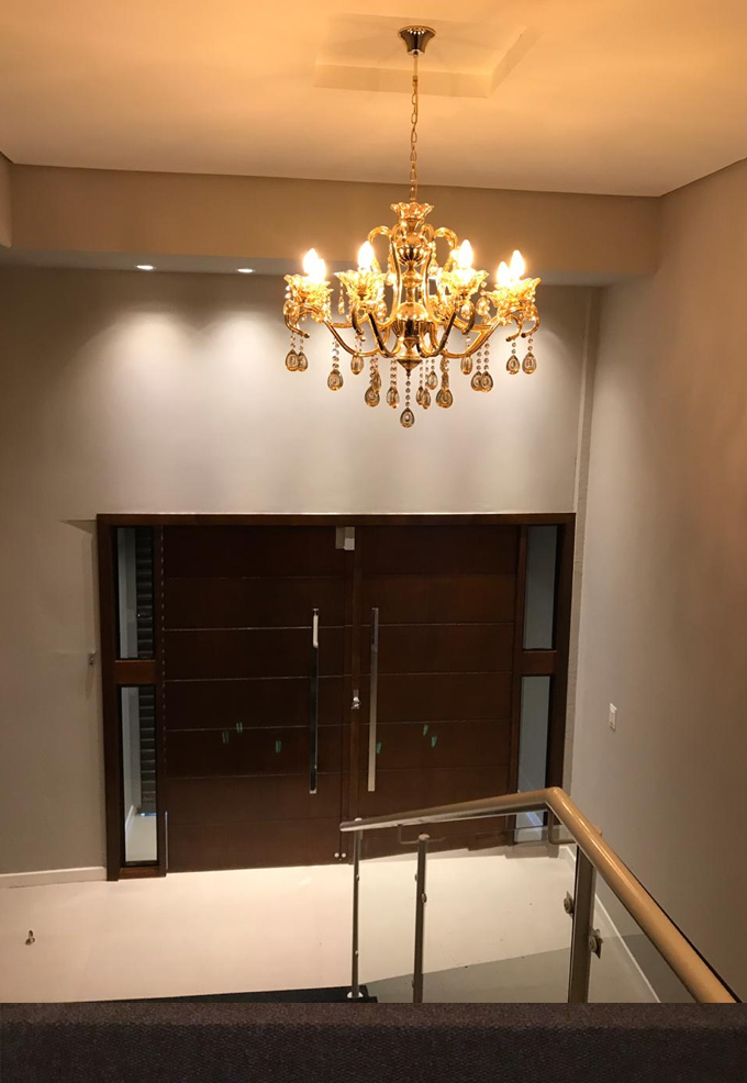 O hall de entrada é totalmente decorado e preparado para eventos sociais. Para casamentos, uma escada que dá acesso ao salão merece destaque, criando ainda mais glamour para a ocasião.