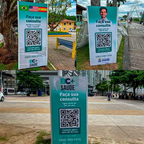 Balneário Camboriú disponibiliza agora o serviço de telemedicina em três idiomas: português, inglês e espanhol. Para facilitar o acesso de moradores e turistas, quatro totens informativos com QR Codes foram instalados em locais estratégicos da cidade: Roda Gigante, Praça Almirante Tamandaré, Praça do Pescador e Atracadouro Barra Sul.