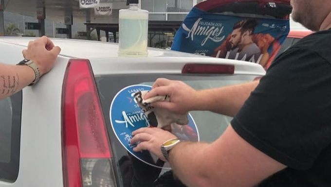 Mais uma semana com adesivaço promovido pela organização do evento, que junto com a rádio Cidade, fizeram uma verdadeira blitz em Itapema. Quem passou pelo posto Modesto nesta terça, adesivou o carro e garantiu ingresso com desconto.