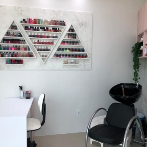 O salão fica na Avenida Hercílio Luz, 1384. O espaço é moderno e está todo decorado, pronto para atender as clientes.