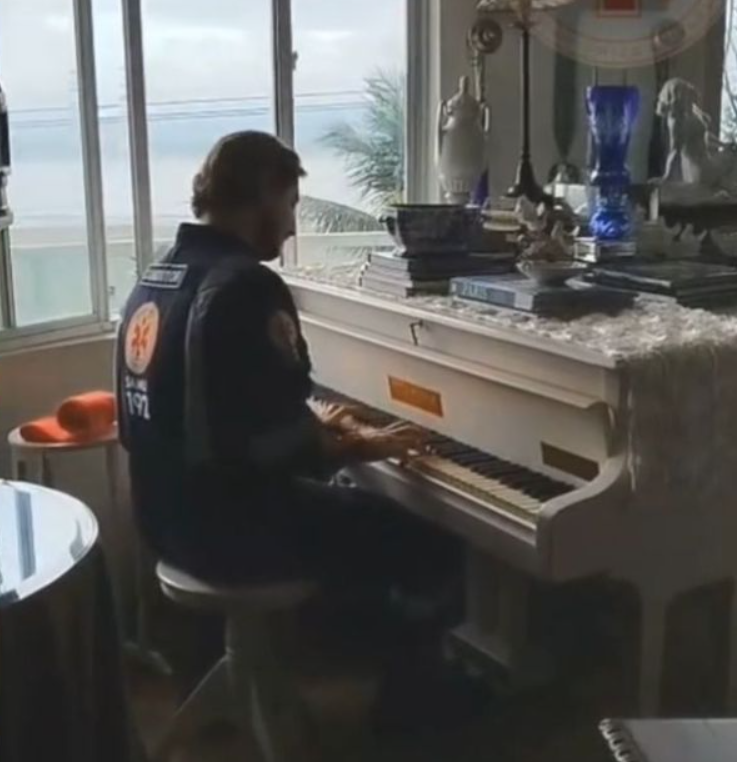 Durante a conversa, o paciente mencionou sua saudade de ouvir piano. Foi então que um dos socorristas, que também é pianista, se aproximou do instrumento e tocou algumas notas, proporcionando um momento de acolhimento e conforto em meio à dor.