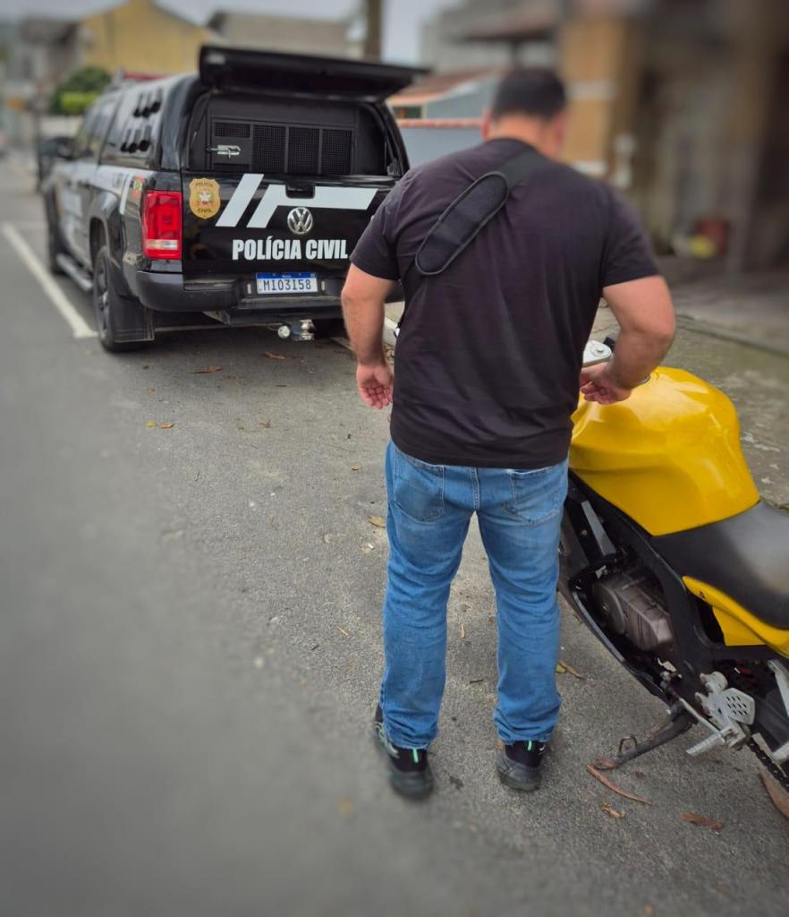 Durante o cumprimento das ordens judiciais, os policiais civis apreenderam a motocicleta utilizada no crime e roupas semelhantes às usadas pelo suspeito na data dos fatos.
