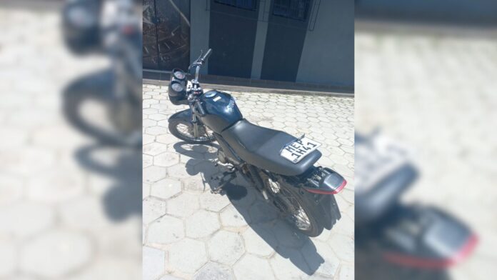 Na verificação, foi constatado que a placa pertencia a outra motocicleta, registrada em nome de terceiro e sem registro de furto ou roubo. O veículo, no entanto, apresentava sinais identificadores divergentes do registro original, configurando adulteração.