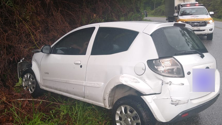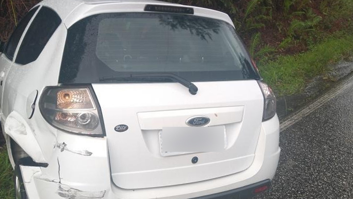 O acidente não registrou feridos, apenas a condutora estava no carro. Ela relatou que ao fazer a curva perdeu o controle da direção, rodou na pista e só parou quando se chocou contra o barranco.