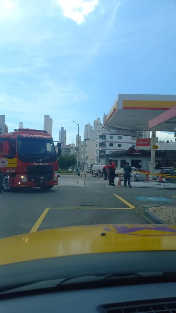 Na manhã desta sexta-feira, 19 de janeiro, o Corpo de Bombeiros foi acionada para atender a uma ocorrência de incêndio em uma bomba de combustível no Posto Shell, localizado na Avenida Martin Luter esquina com a Rua Israel, no Bairro das Nações, em Balneário Camboriú.