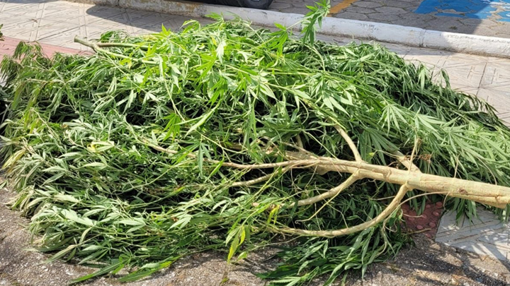 Uma plantação de maconha, com plantas já de grande estatura foi descoberta após denúncias de moradores.