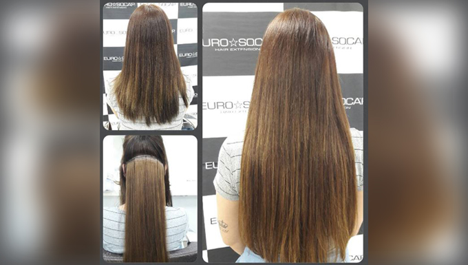 O aplique pode ser reutilizado e o resultado deixa os cabelos com efeito extremamente naturais, com cabelos 100% humanos. Com dupla capa autocolante de 4 cm de largura e 0,8 cm de comprimento, disponível em todas as cores Euro So Cap e nos comprimentos: 40/45 e 50/55 cm.
