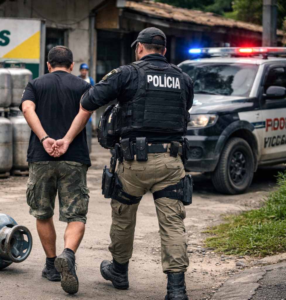 Ao serem perseguidos por funcionários da distribuidora, os suspeitos teriam jogado o botijão em cima de um dos trabalhadores e fugido em seguida. Durante a ação, um dos autores foi detido com o apoio de um sargento que estava nas proximidades e, em seguida, encaminhado à Delegacia de Polícia Civil.