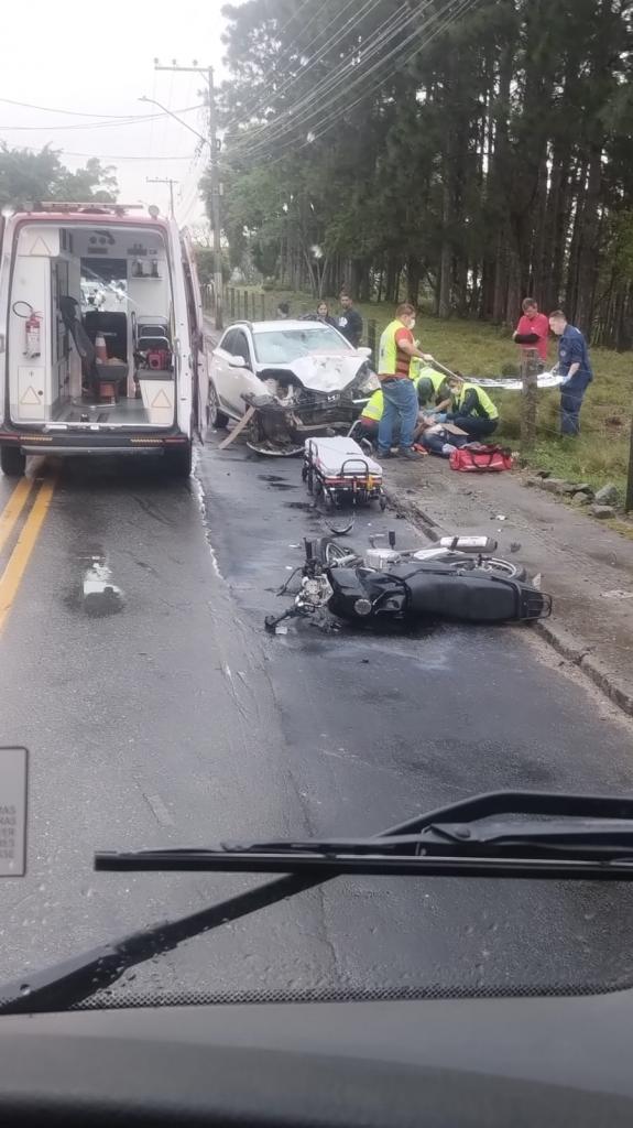 Um acidente de trânsito, envolvendo um carro e uma moto na estrada geral do bairro Santa Luzia, entre Tijucas e Porto Belo, deixou uma pessoa gravemente ferida na manhã desta segunda-feira, dia 21 de outubro.